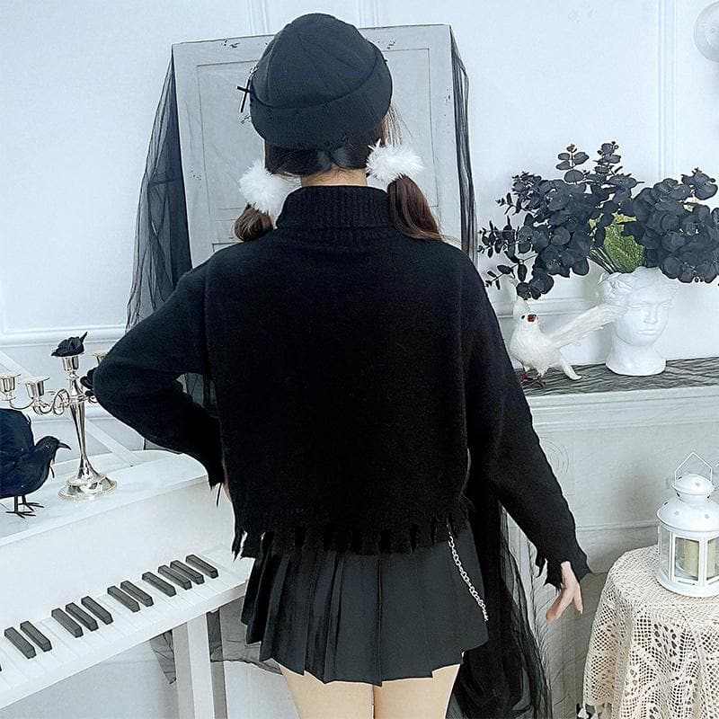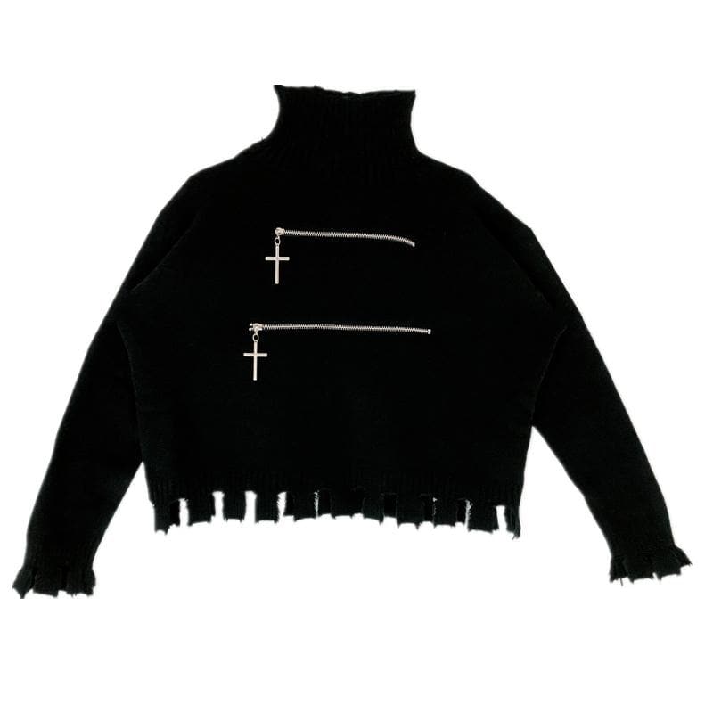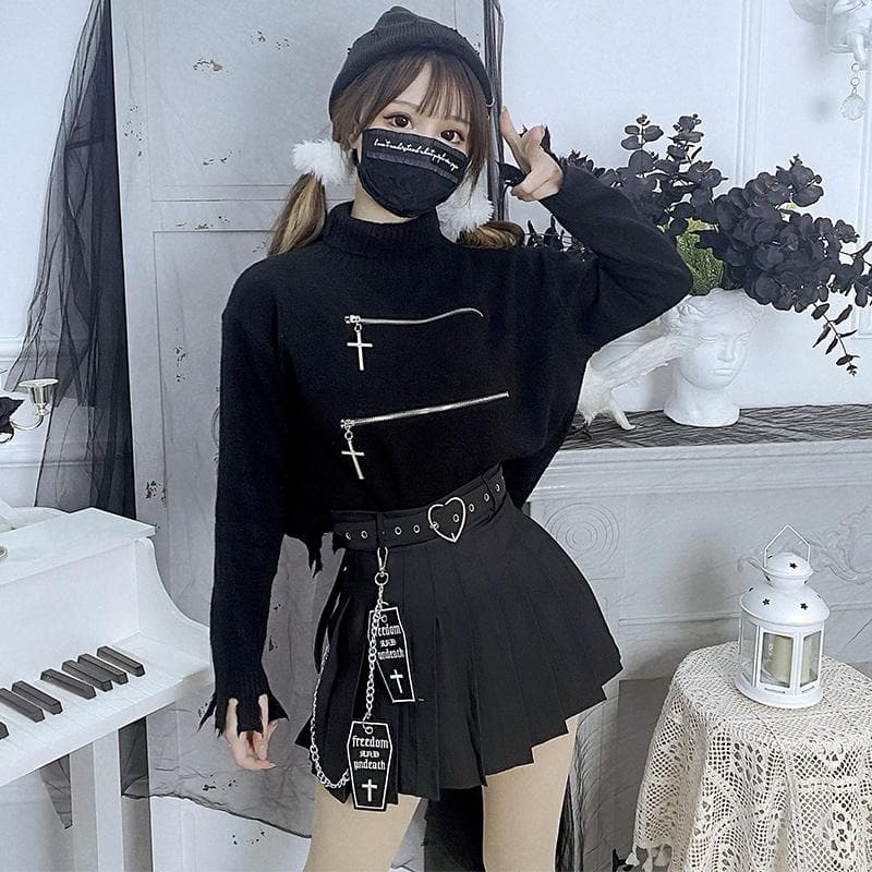 Cool Girl Cross Zipper Turtleneck Crop Sweater EE0714