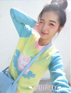 Color: yellow bottom with blue sleeve and pink cake pattern
