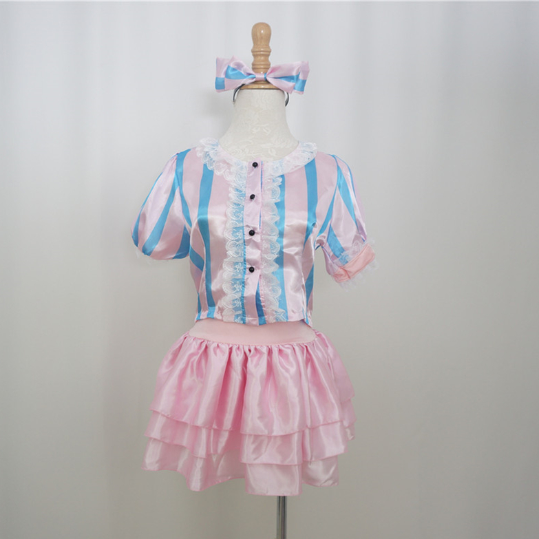 Cosplay Super Sonico Blue Stripes High Waisted Dress Free Ship SP141209