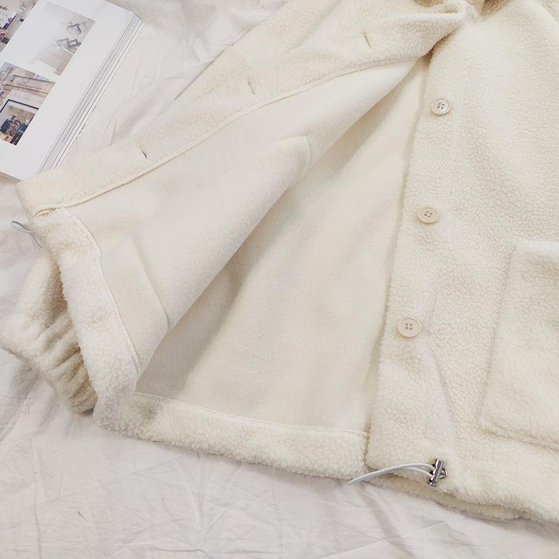 White Plush Kawaii Bear Hoodie Sweater with Pocket Coat SS2144