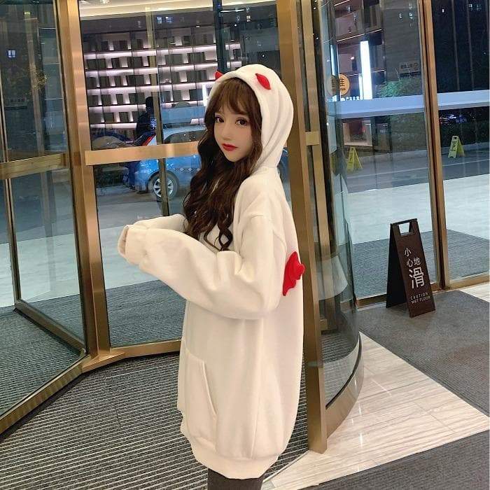 White Cute Little Devil Girl Red Horns Hoodie SP16396 · SpreePicky · Online Store Powered by Storenvy