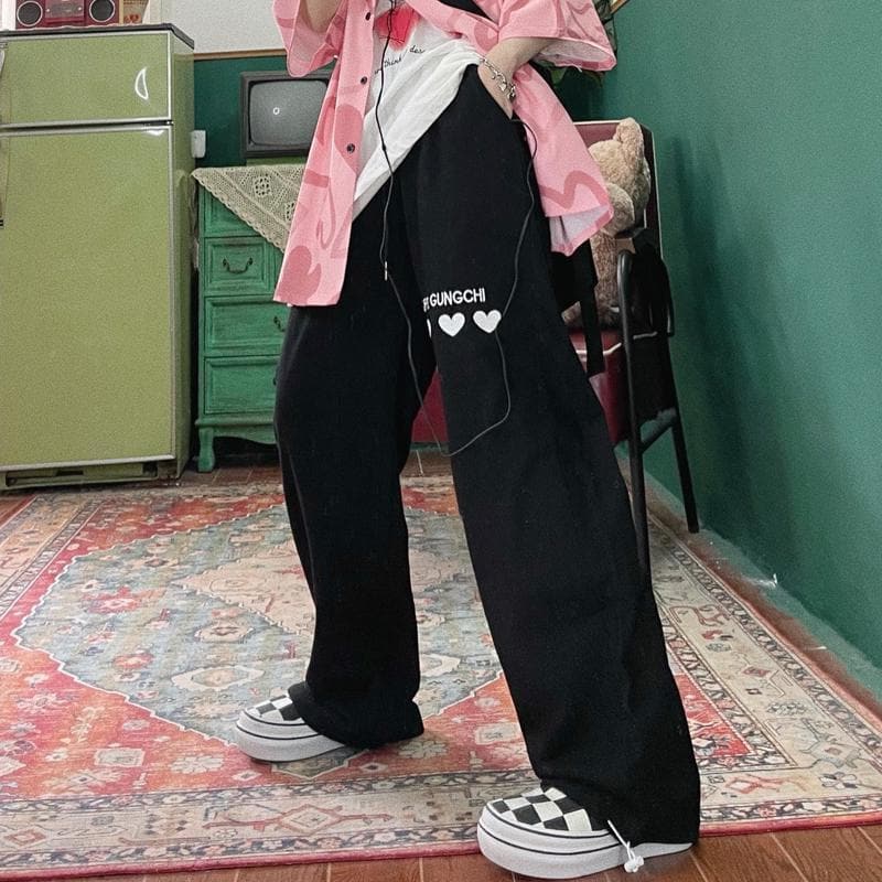 XL-6XL Pink/Black/Purple Love Hearts Comfy Casual Pants SS1904