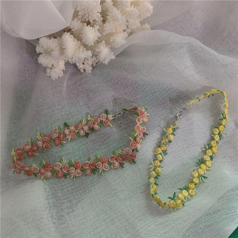 Sweet Romantic Pink Knit Flower Rose Necklace SP15617 · SpreePicky · Online Store Powered by Storenvy