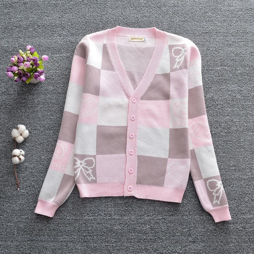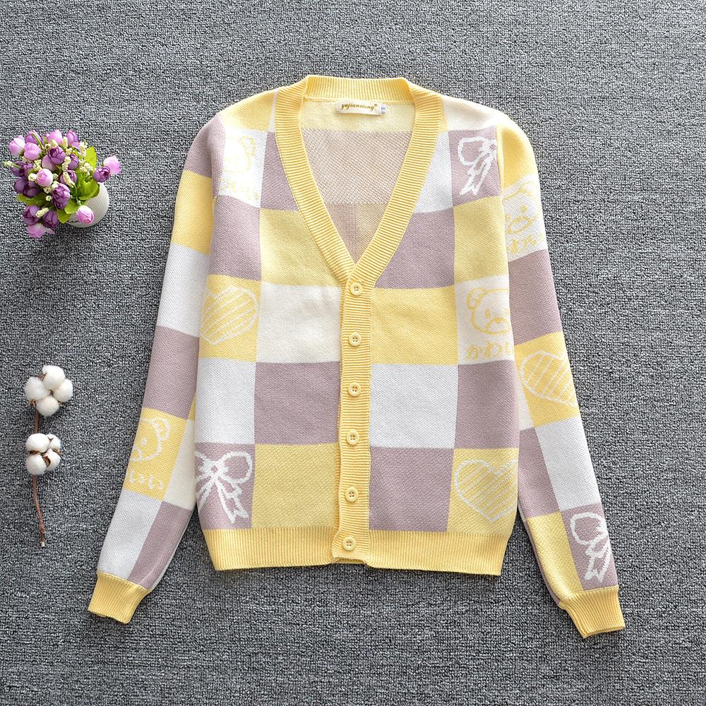 Yellow/Pink Long Sleeved Plaid Knitted Jacket Cardigan Sweater SS1933 · SpreePicky · Online Store Powered by Storenvy