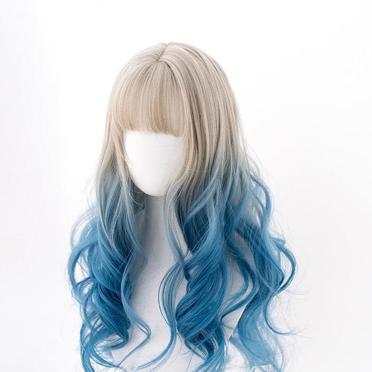 White Blue Mixed Large Wavy Long Curly Wig SS0917 · SpreePicky · Online Store Powered by Storenvy