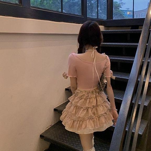 Sweet Chanpagne Cute High Waist Skirt Pink Tops SS1930 · SpreePicky · Online Store Powered by Storenvy