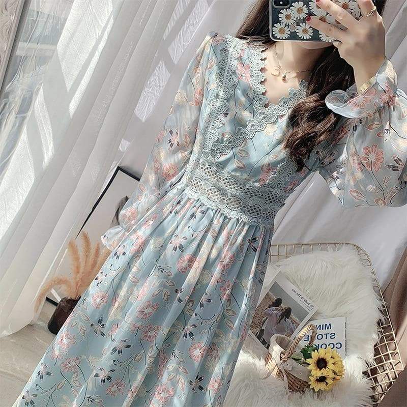 Chiffon lace A-line Butterfly Sleeve Floral Dress SS0966 · SpreePicky · Online Store Powered by Storenvy
