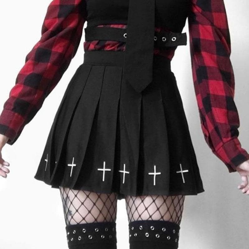 Gothic Cross Print Black Pleated Skirts SP13899 · SpreePicky · Online Store Powered by Storenvy