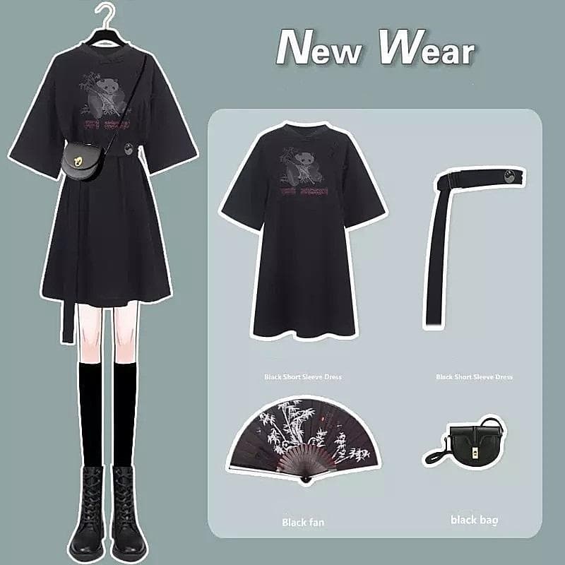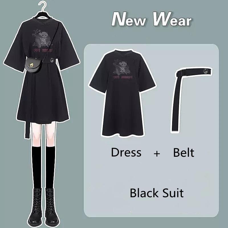 Black/White Summer Casual Long Cute Dress with Belt Streetwear 2 Piece Set SP16229 · SpreePicky · Online Store Powered by Storenvy