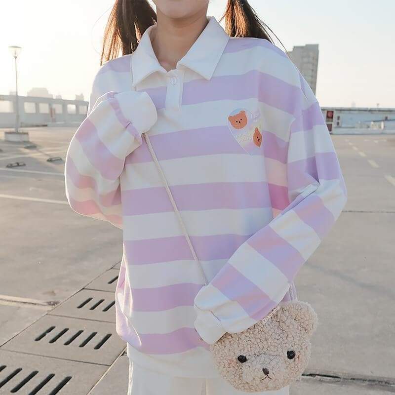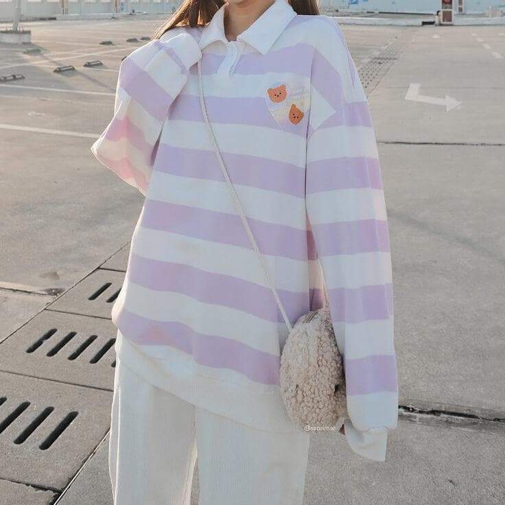 Cute Bears Pastel Purple Striped Sweatshirt SP15949 · SpreePicky · Online Store Powered by Storenvy