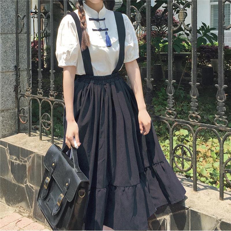 Kawaii Loose Strap Blue Dress And Shirt SP16174
