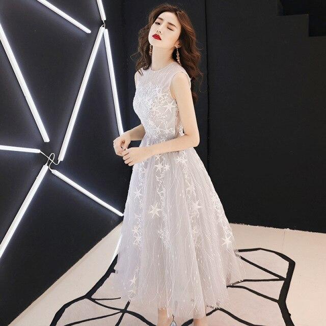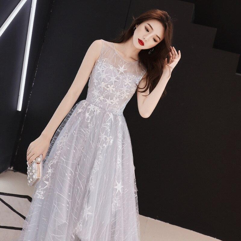 Grey Long Evening Dress Star Sleeveless Party Prom Gown SS1834