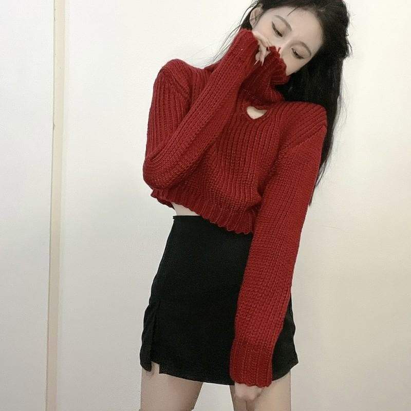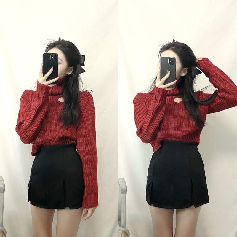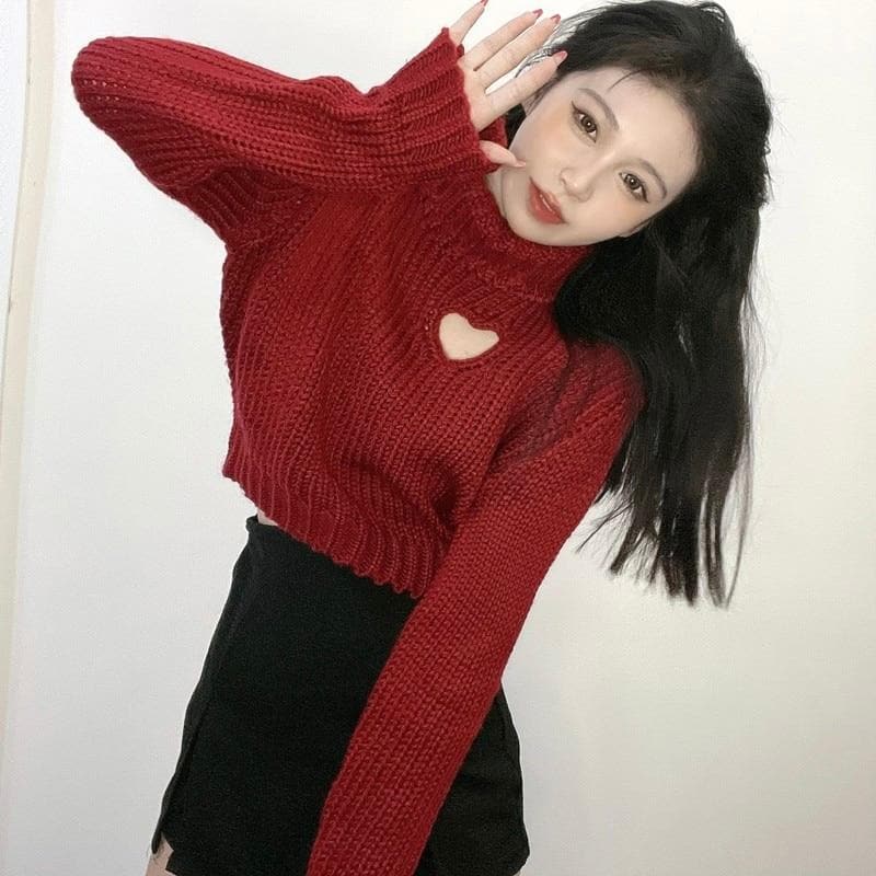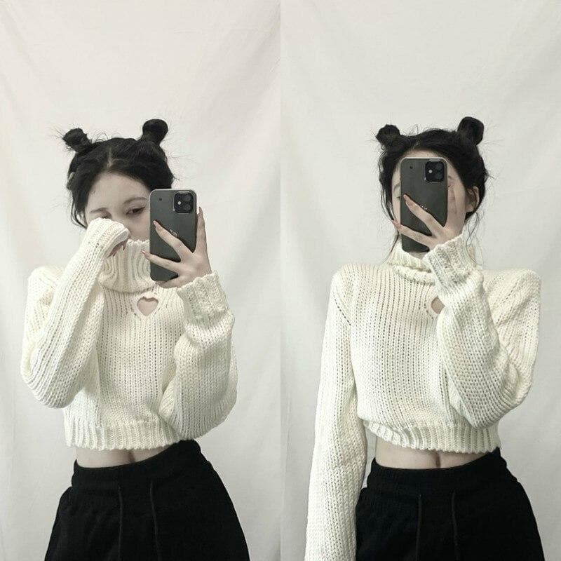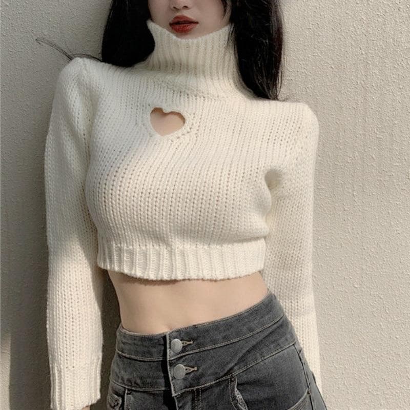 Chic Heart-shaped Hollow Out Girl Long Sleeve Turtleneck Crop Sweaters SP15559 · SpreePicky · Online Store Powered by Storenvy