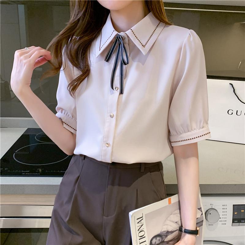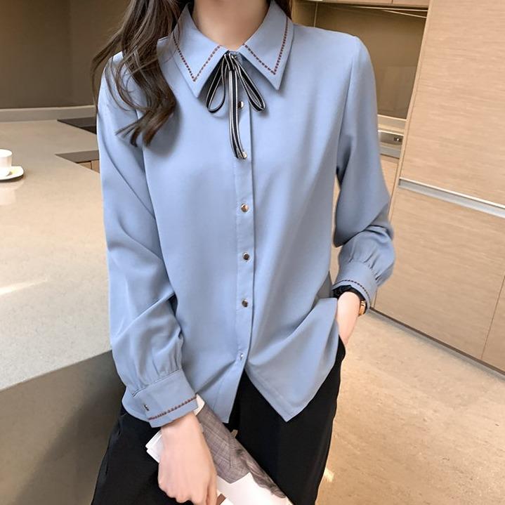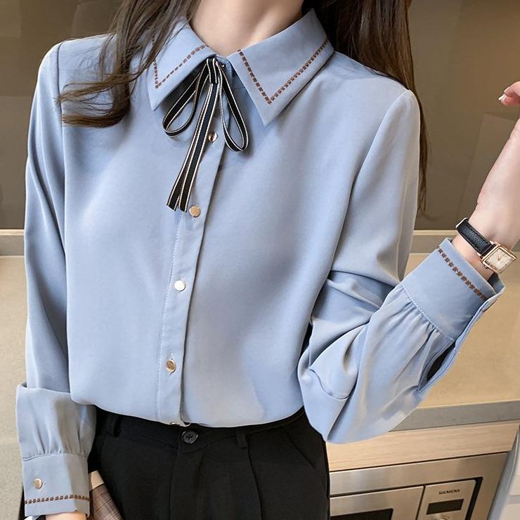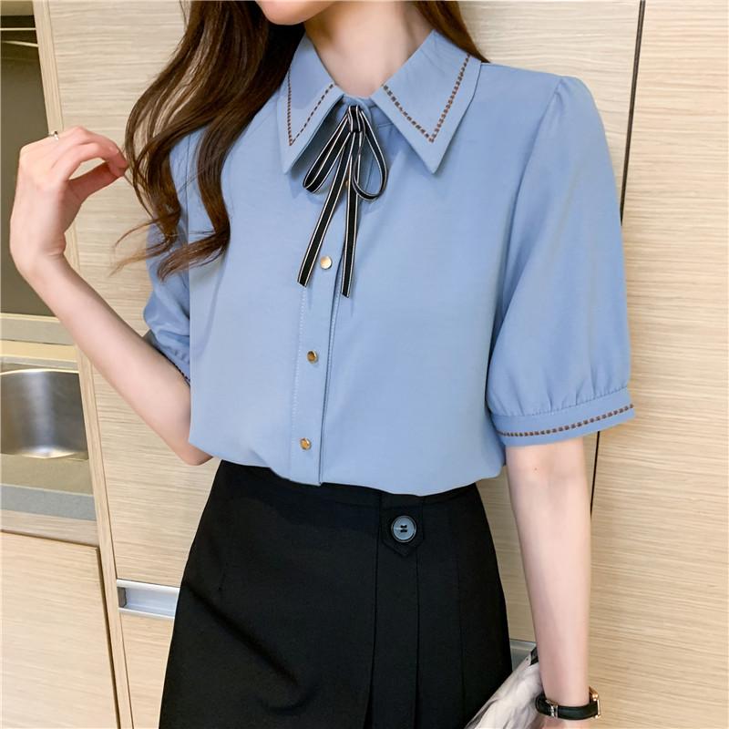 Blue/Apricot/White Bow Embroidered Long Sleeve/Short Sleeve Shirt SP16151 · SpreePicky · Online Store Powered by Storenvy