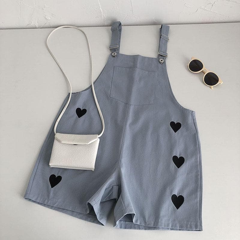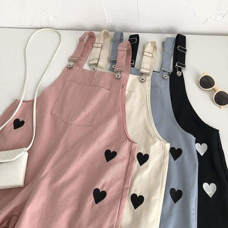4 Colors Kawaii Love Hearts Embroidered Overalls SP16224