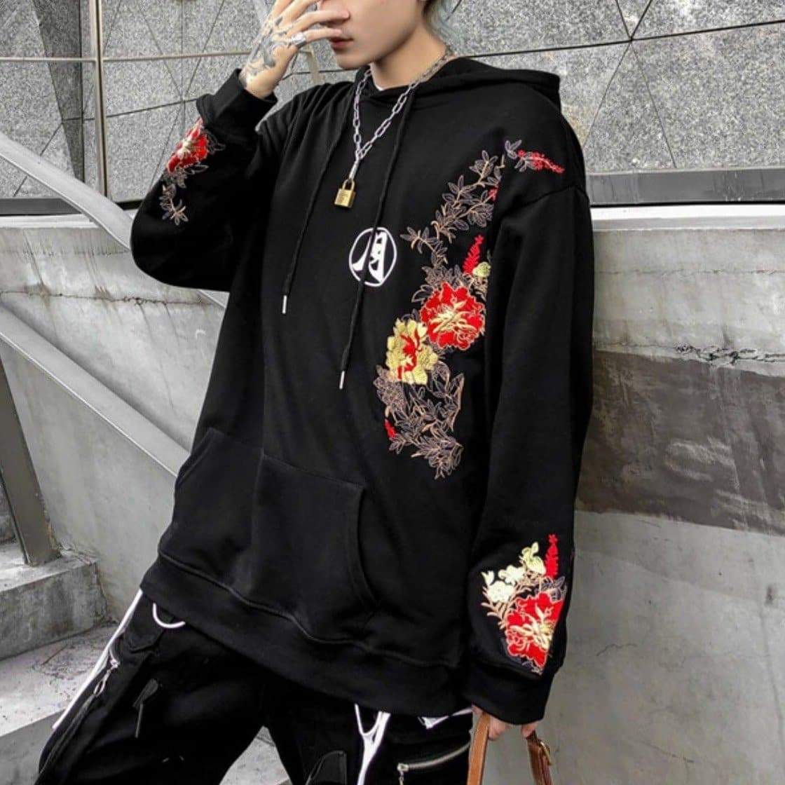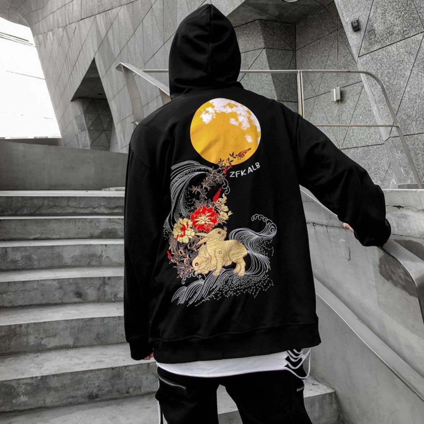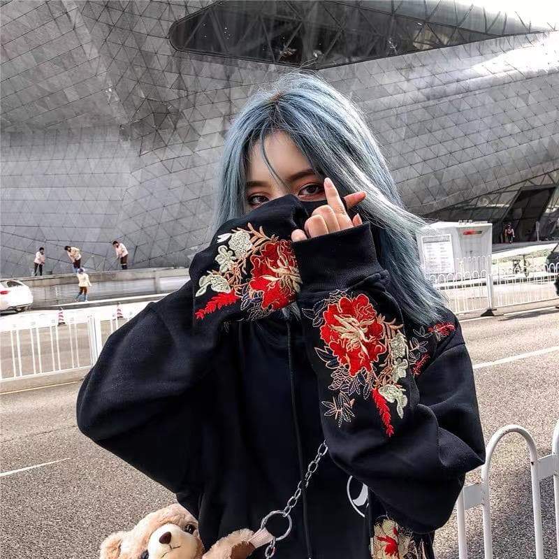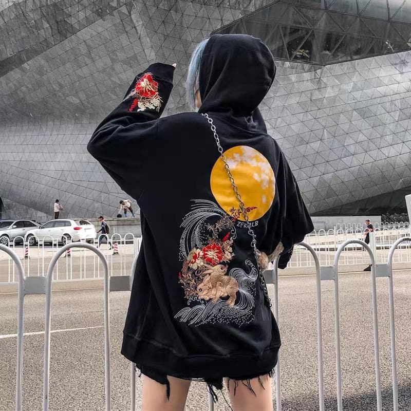 Black/Pink/White Embroidery Harajuku Moon Couples Hoodie SP16012 · SpreePicky · Online Store Powered by Storenvy