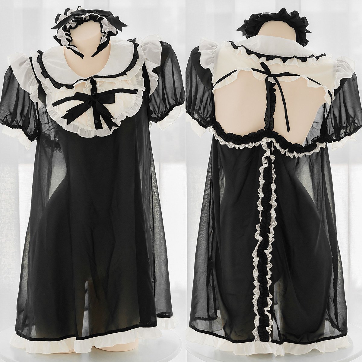 Cute Black Lingerie Dress See Through With Cute White Details SS2106