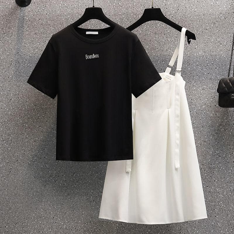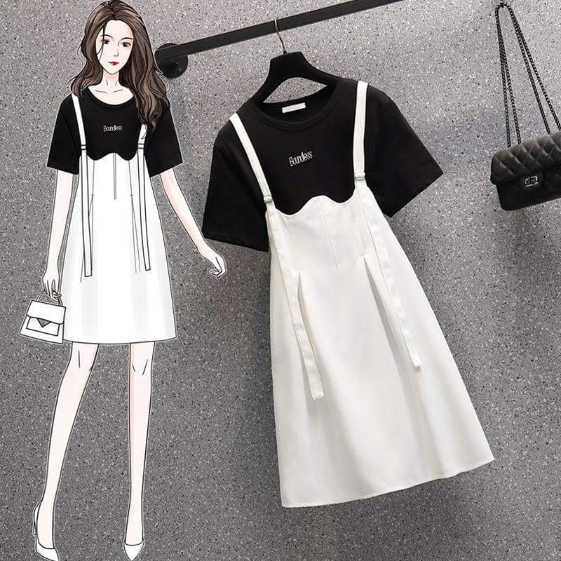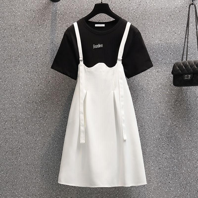 Black White Simple Casual Summer T-shirt Dress Set SS1297