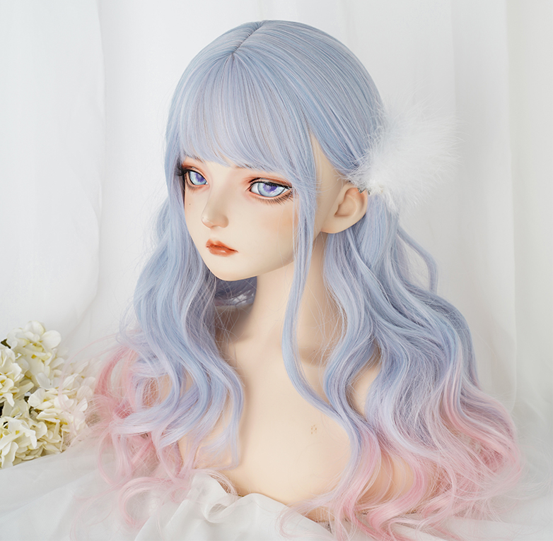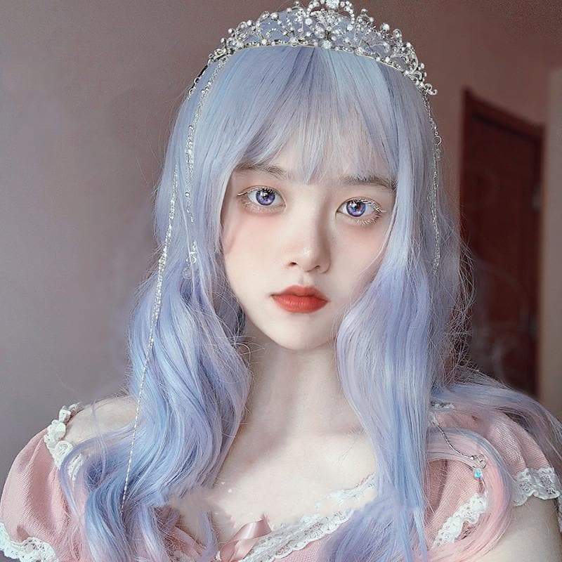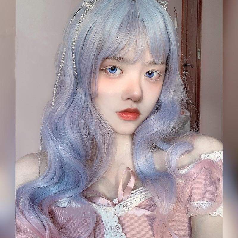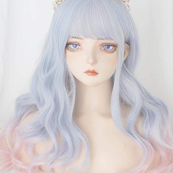 Aqua Blue Gradient Neat Bang Long Curly Wig SP15634 · SpreePicky · Online Store Powered by Storenvy