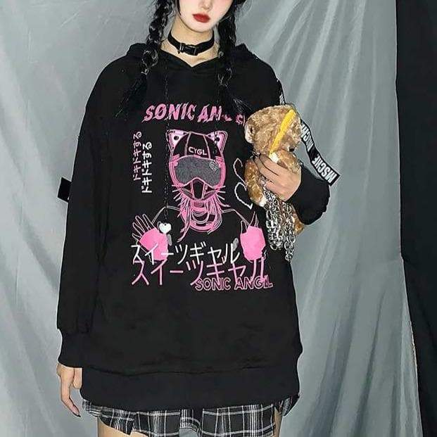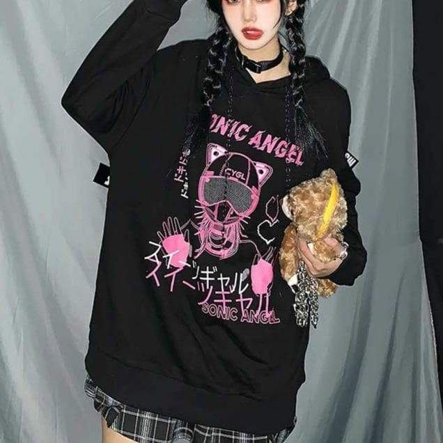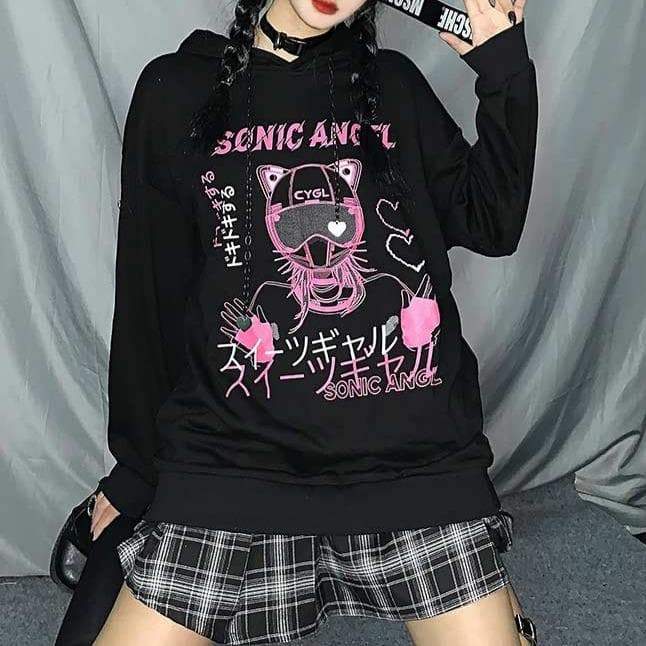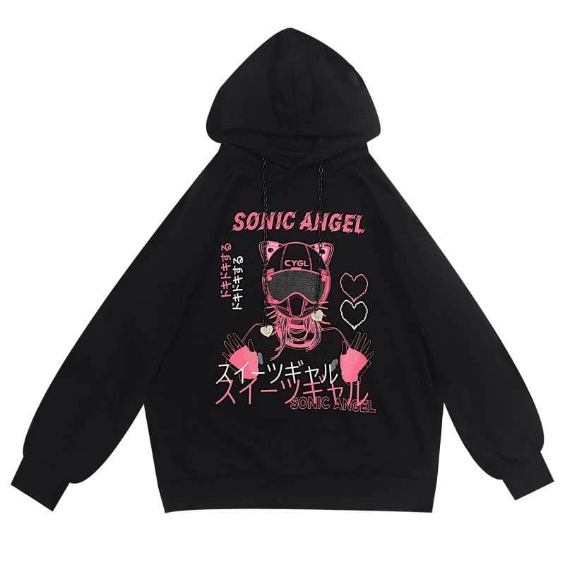 - Black "Sonic Angel" Print Hooded Harajuku eGirl Sweatshirt SP16123