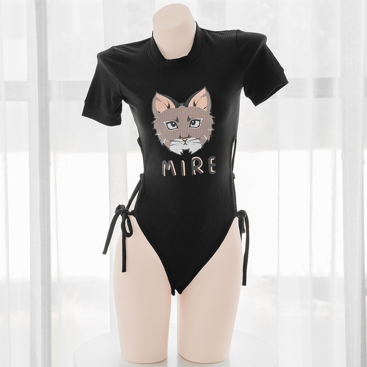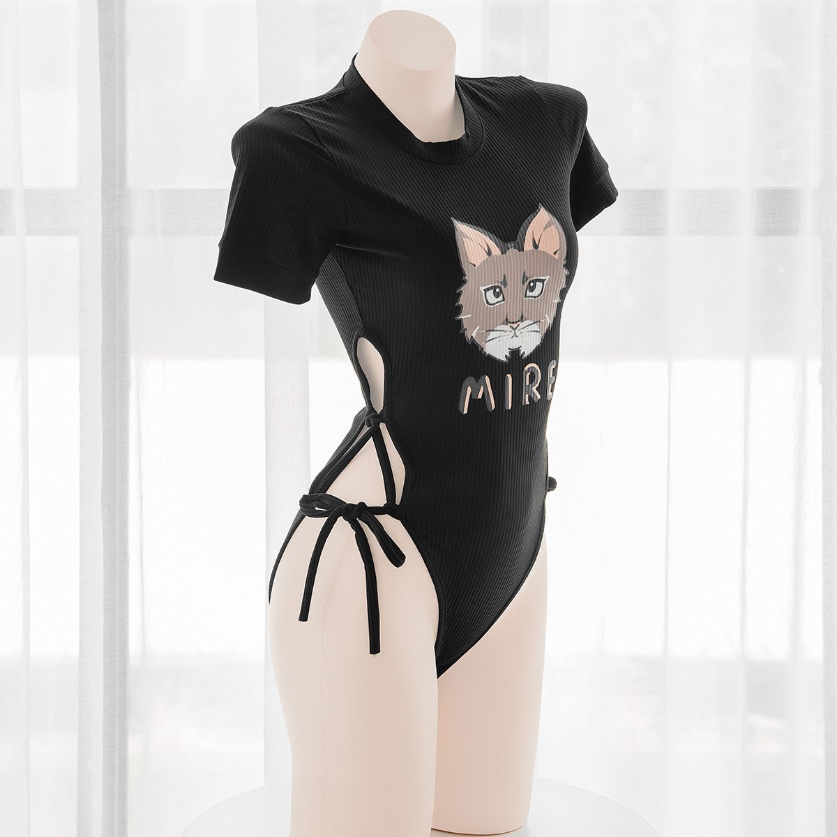 Cute Onepiece "Mire" Black Laceup Body Suit Lingerie SS2097