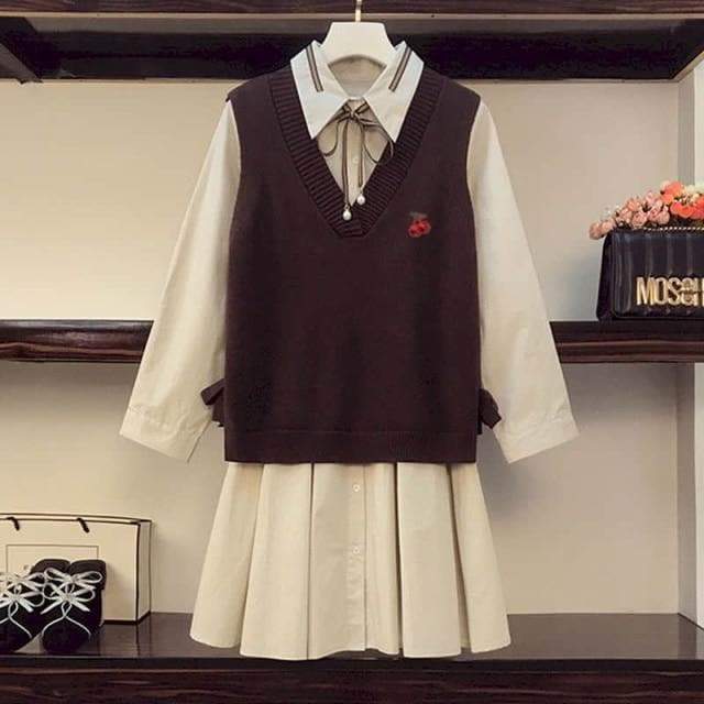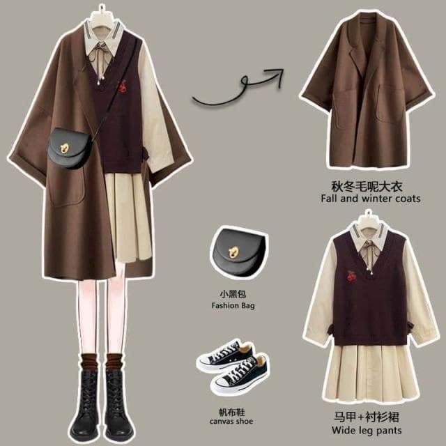 Dark Academia Dark Academia Retro Woolen Jacket With Vest And Shirt Outfit DK061 CN(Origin)