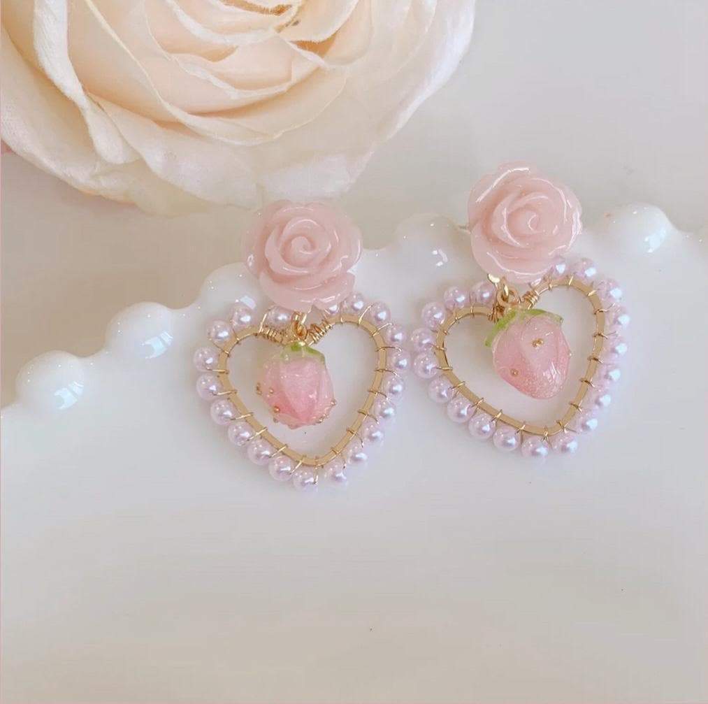 Cute Love Heat Pink Rose Pearl Earrings SP16536 · SpreePicky · Online Store Powered by Storenvy