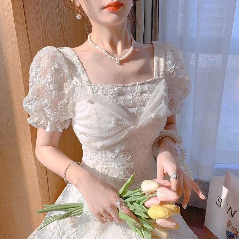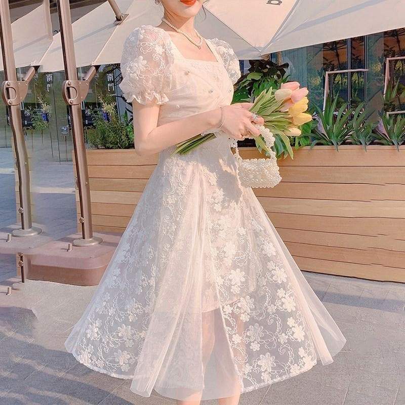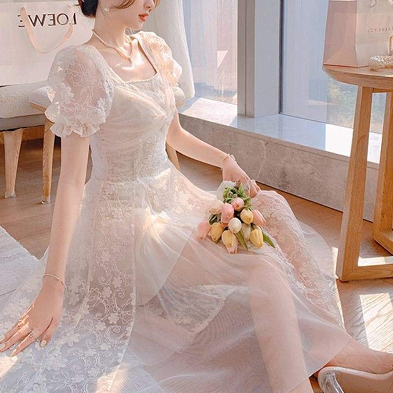 Elegant Apricot Cute Puff Sleeve Lace Dress SP16215 · SpreePicky · Online Store Powered by Storenvy