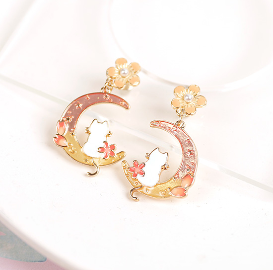 Cute Pastel Sakura Cat Earrings/Clips SP16040 · SpreePicky · Online Store Powered by Storenvy