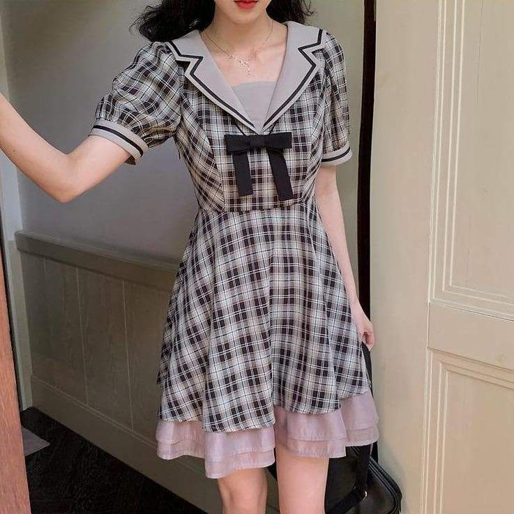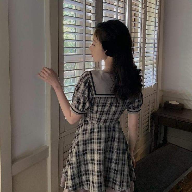 Cute Sailor Collar Plaid Gray Summer Dress SP16004 · SpreePicky · Online Store Powered by Storenvy