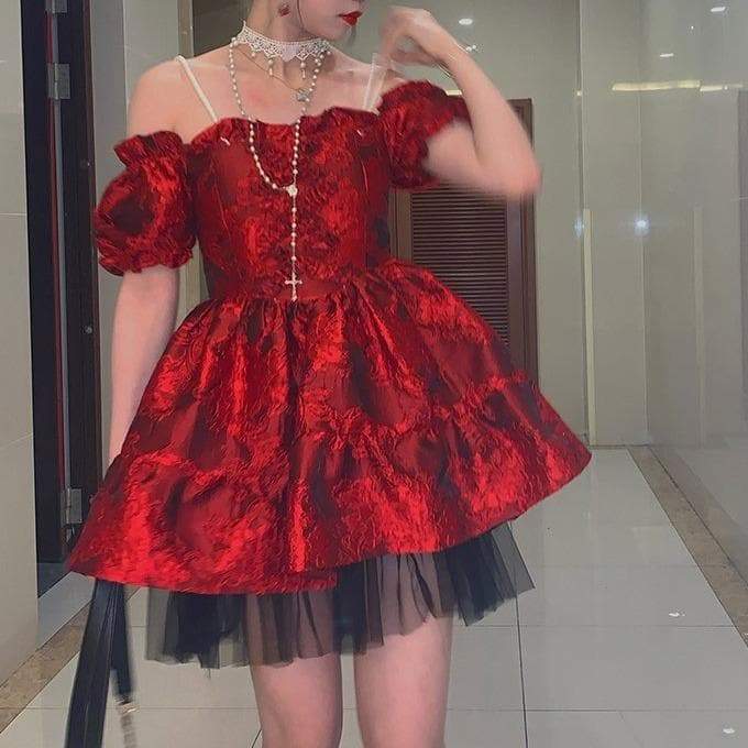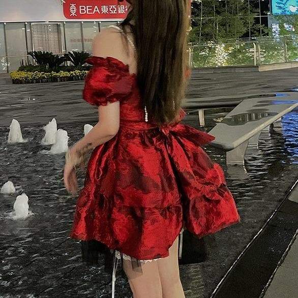 Cute Elegant Red Puffy Sleeves Dress SP15917 · SpreePicky · Online Store Powered by Storenvy