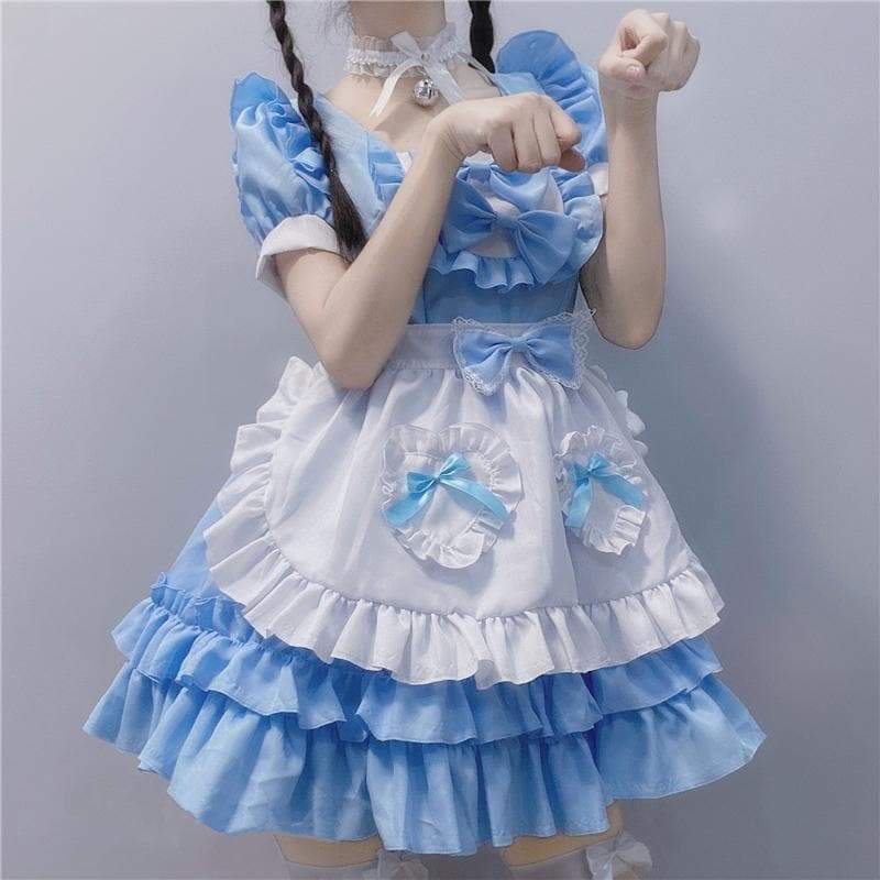Set includes: dress + apron + bowknot*2+necklace + bowknotheadwear