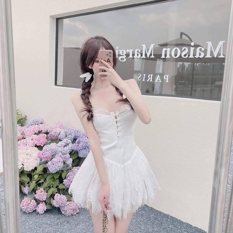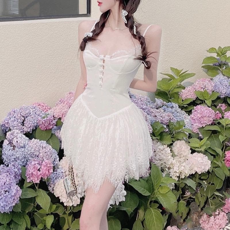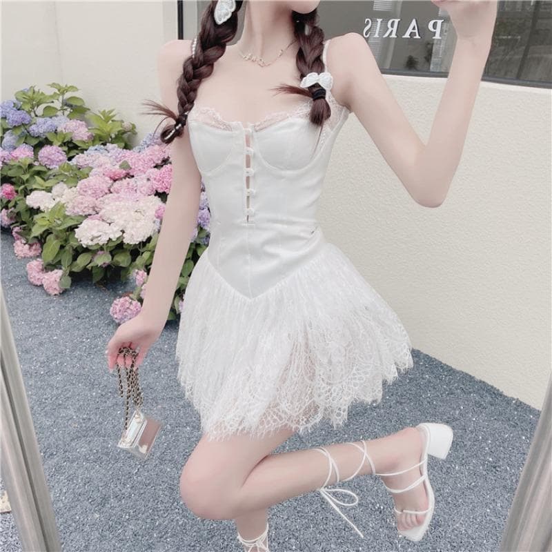 Cute Kawaii Lace White Lace Suspender Dress SS2008