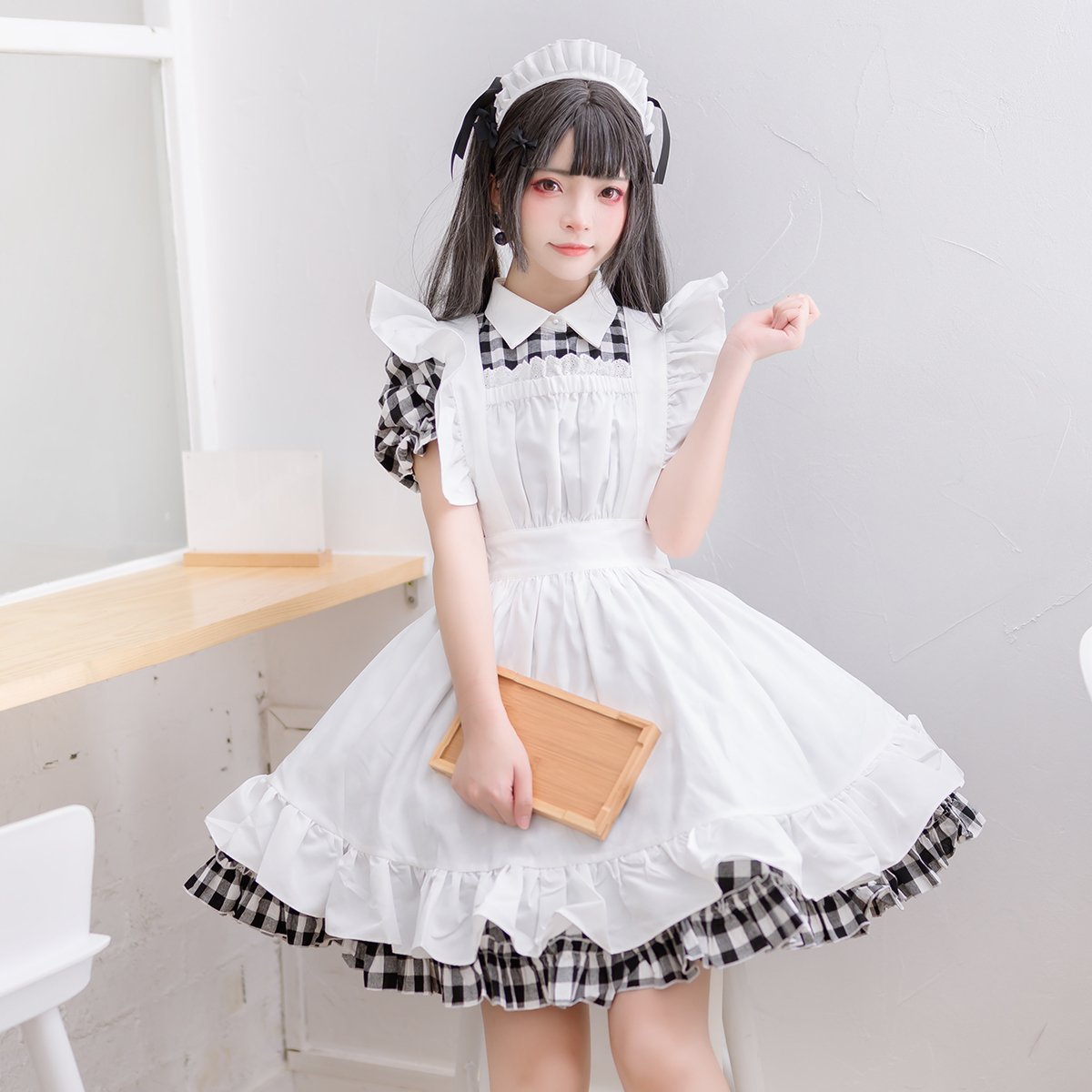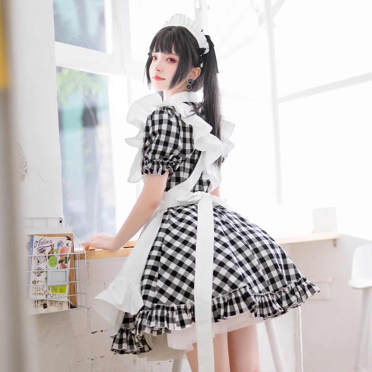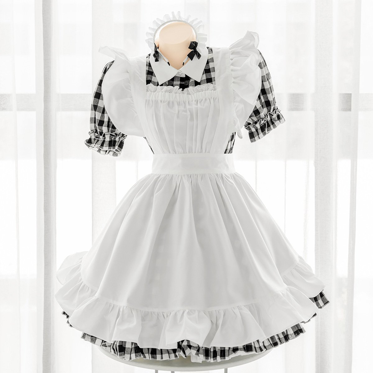 Cute Monochrom Gray Checkers Maid Uniform SS2091