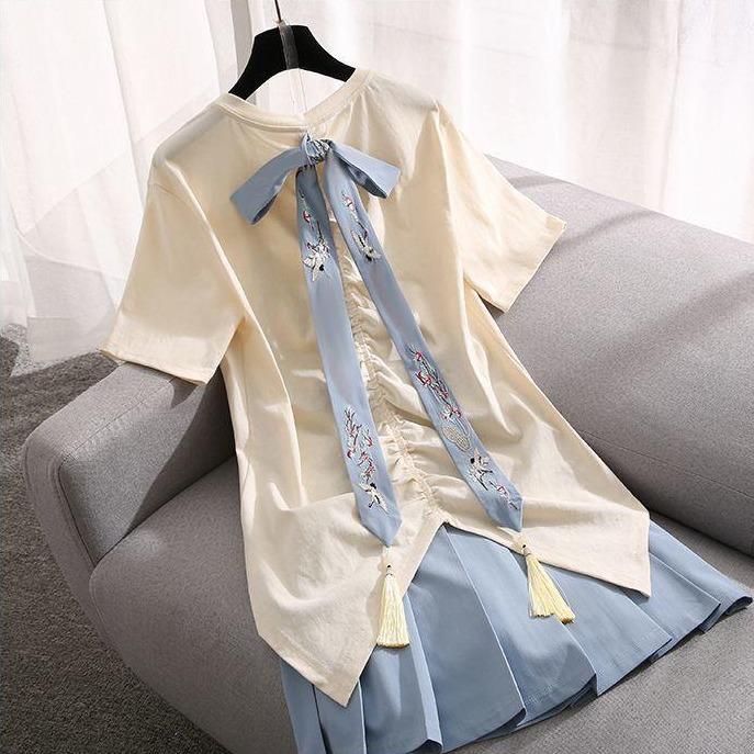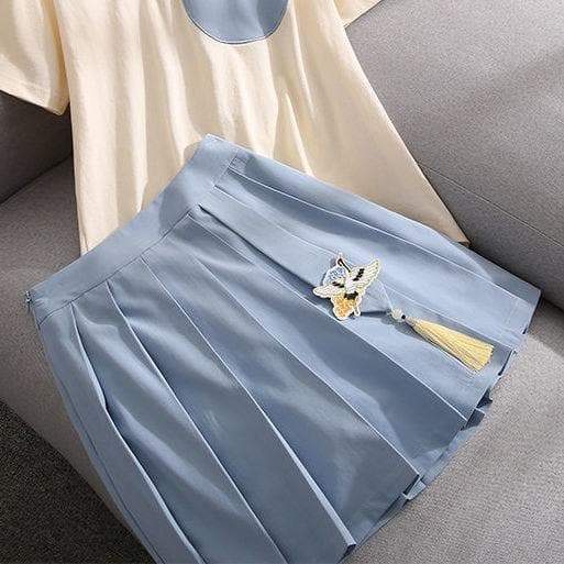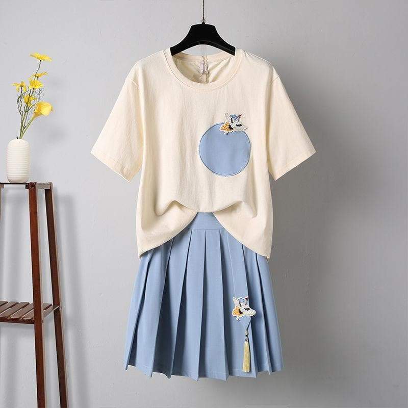Fashion Cute Beige T-shirt Blue Skirt Set SP16153 · SpreePicky · Online Store Powered by Storenvy