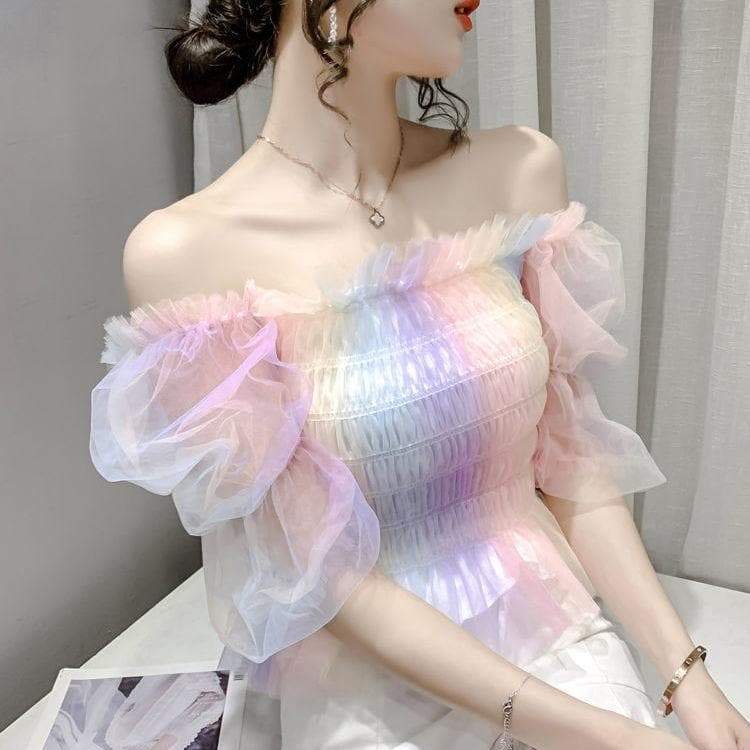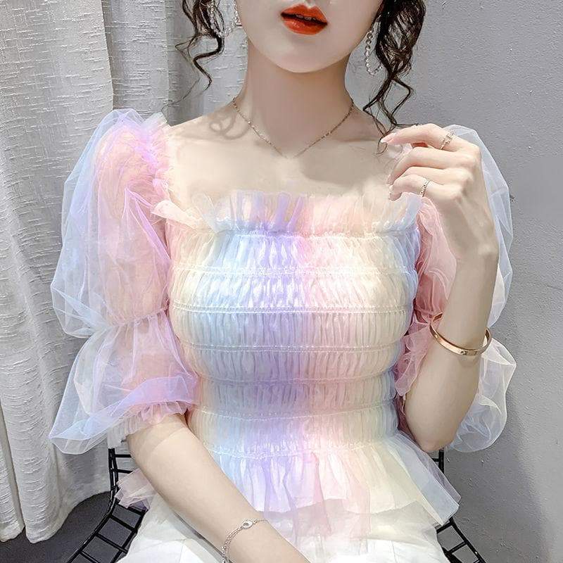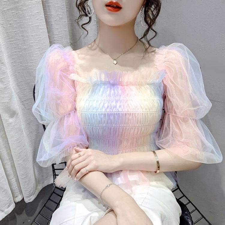 Cute Rainbow Puff Sleeve Square Collar Blouse SP16198 · SpreePicky · Online Store Powered by Storenvy