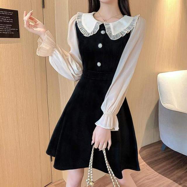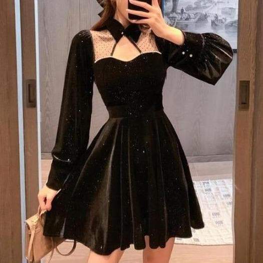 Elegant Vintage Black Lantern Sleeve High Waist Slim Dress SP16136