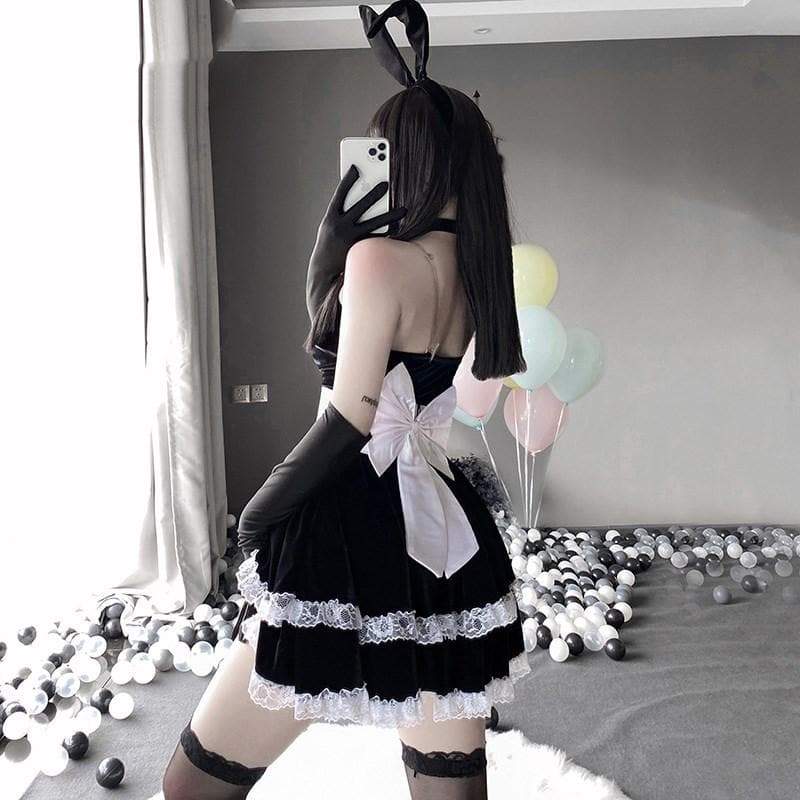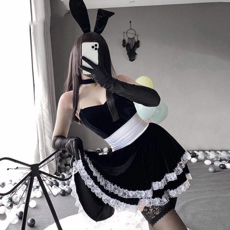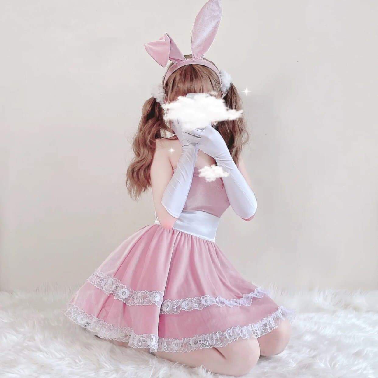 Cute Pink/Black Lovely Sweet Rabbit Maid Cosplay Suit Set SS2003