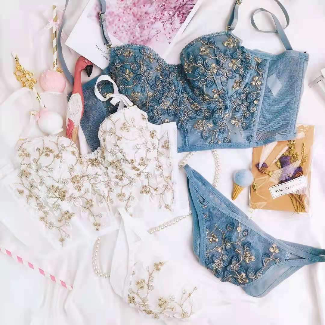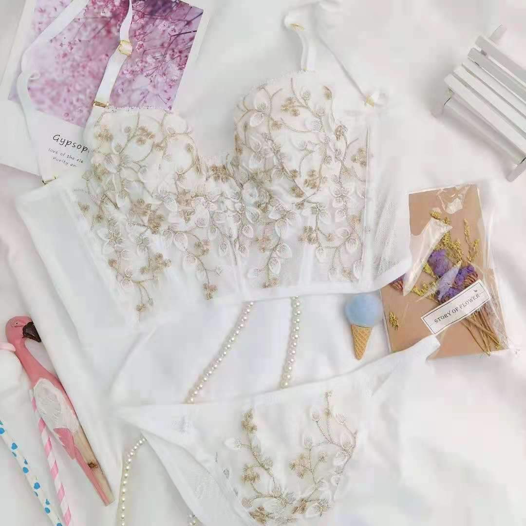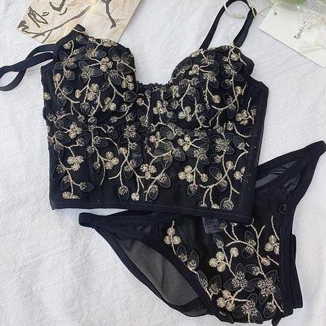 Cute Flower Embroidered Lace Lingerie Set SS1859