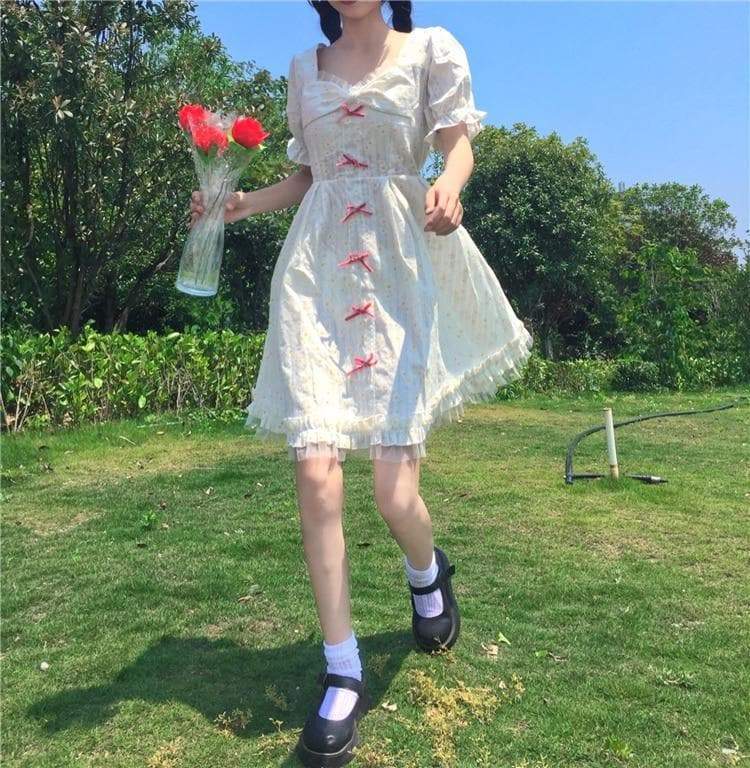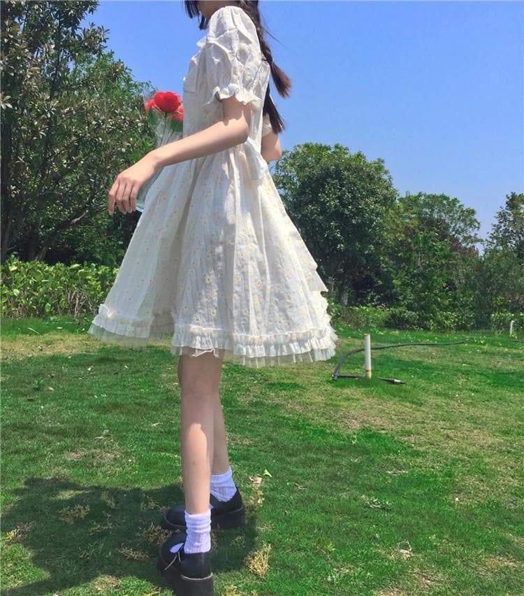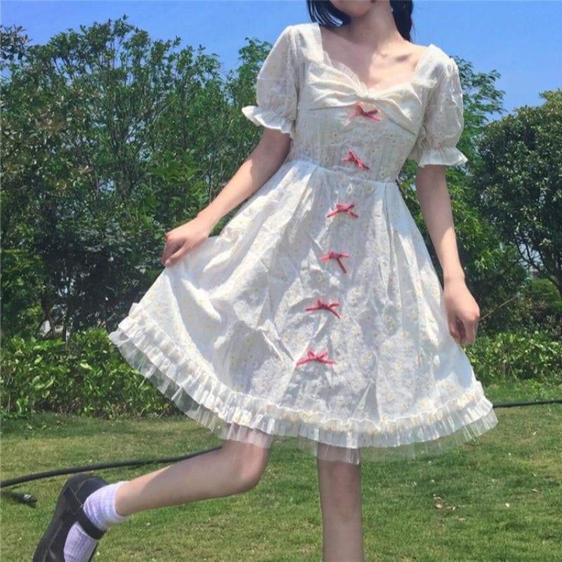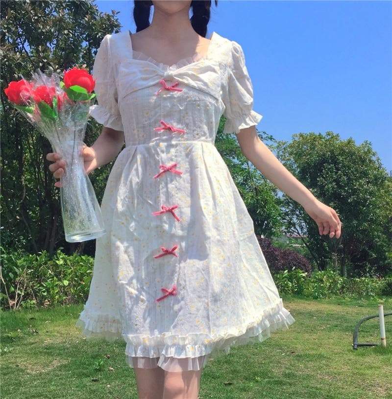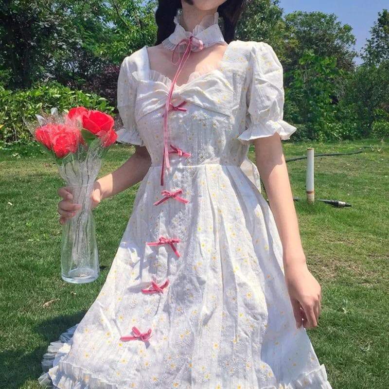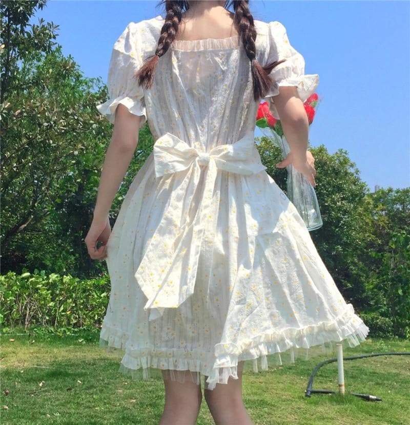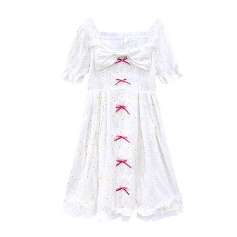 Daisy Kawaii Princess Short Sleeve Summer Dolly Dress with bow decoration and ruffles