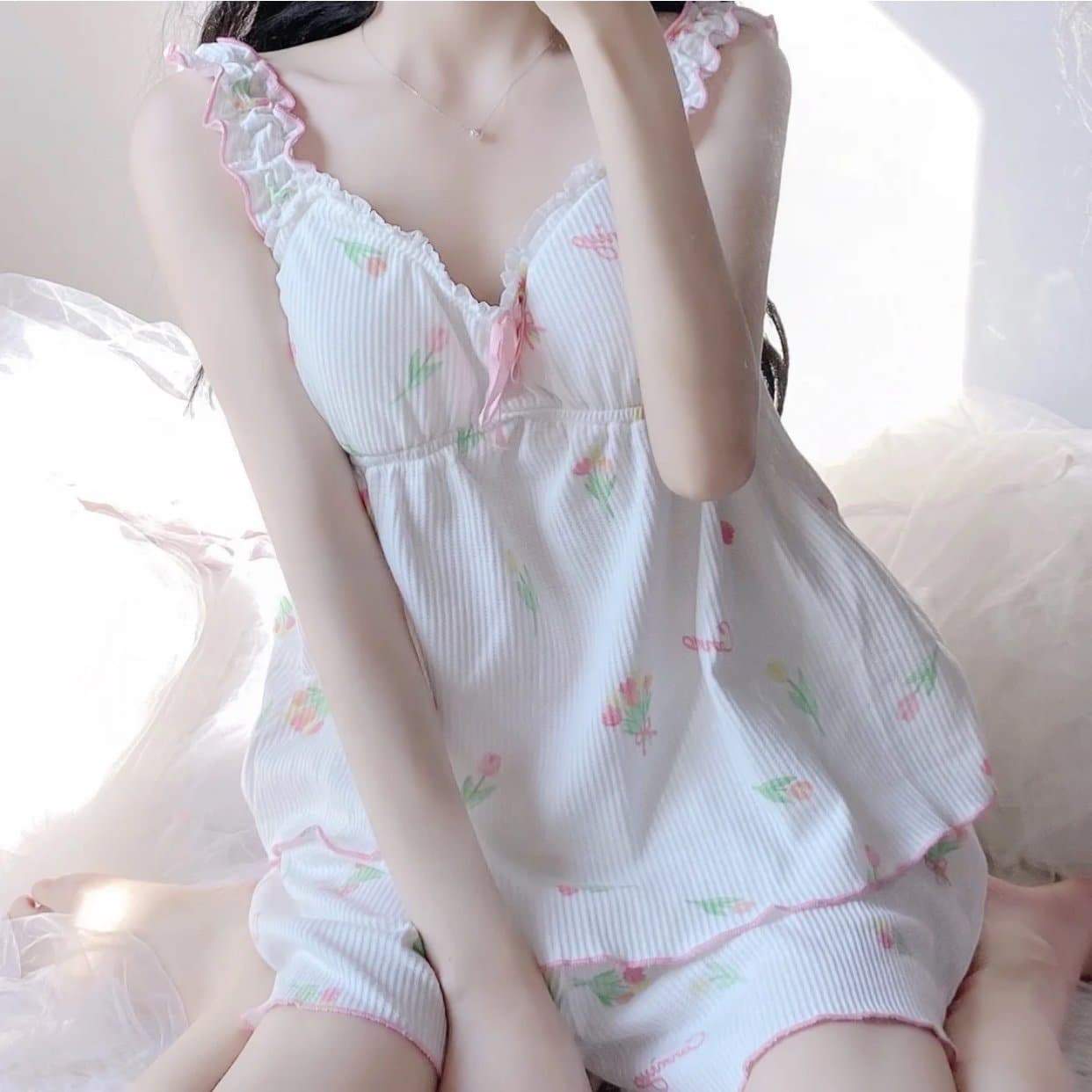 Kawaii Cute Printed Sling Pajama Comfy Homewear Set SS2004