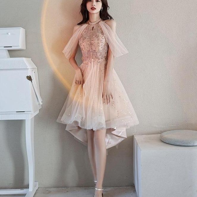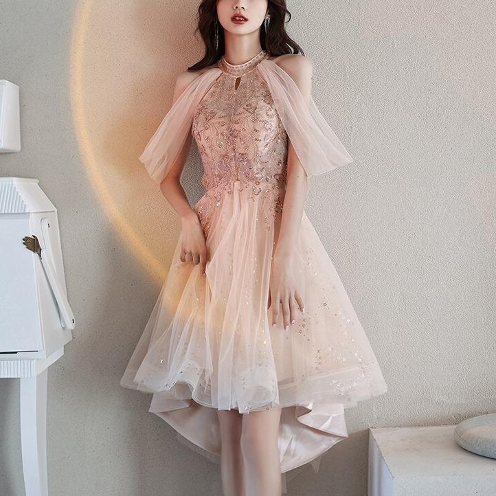 p>Appliques Sequined Tulle Prom Gowns For Graduation Party Halter Short Dresses SS1835
