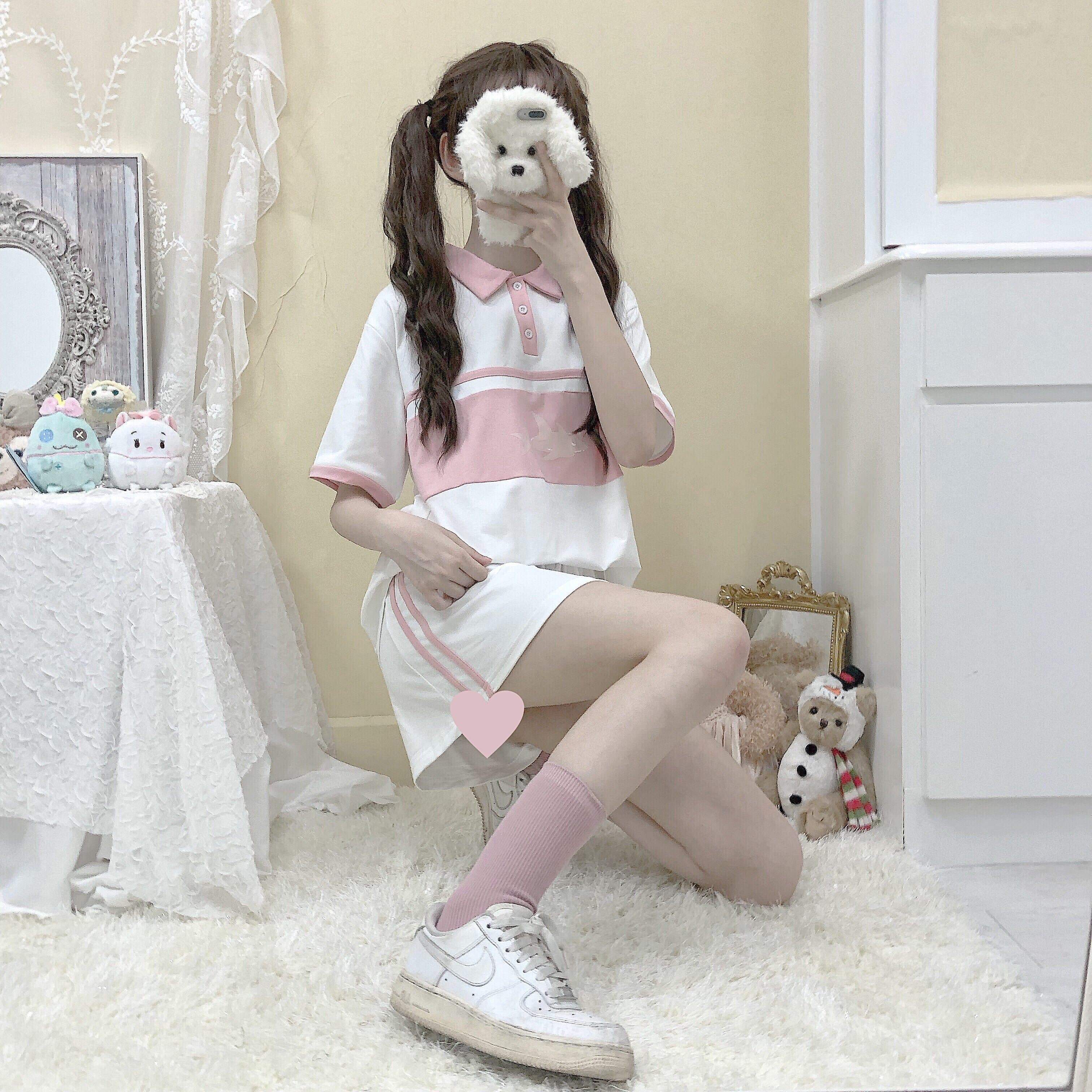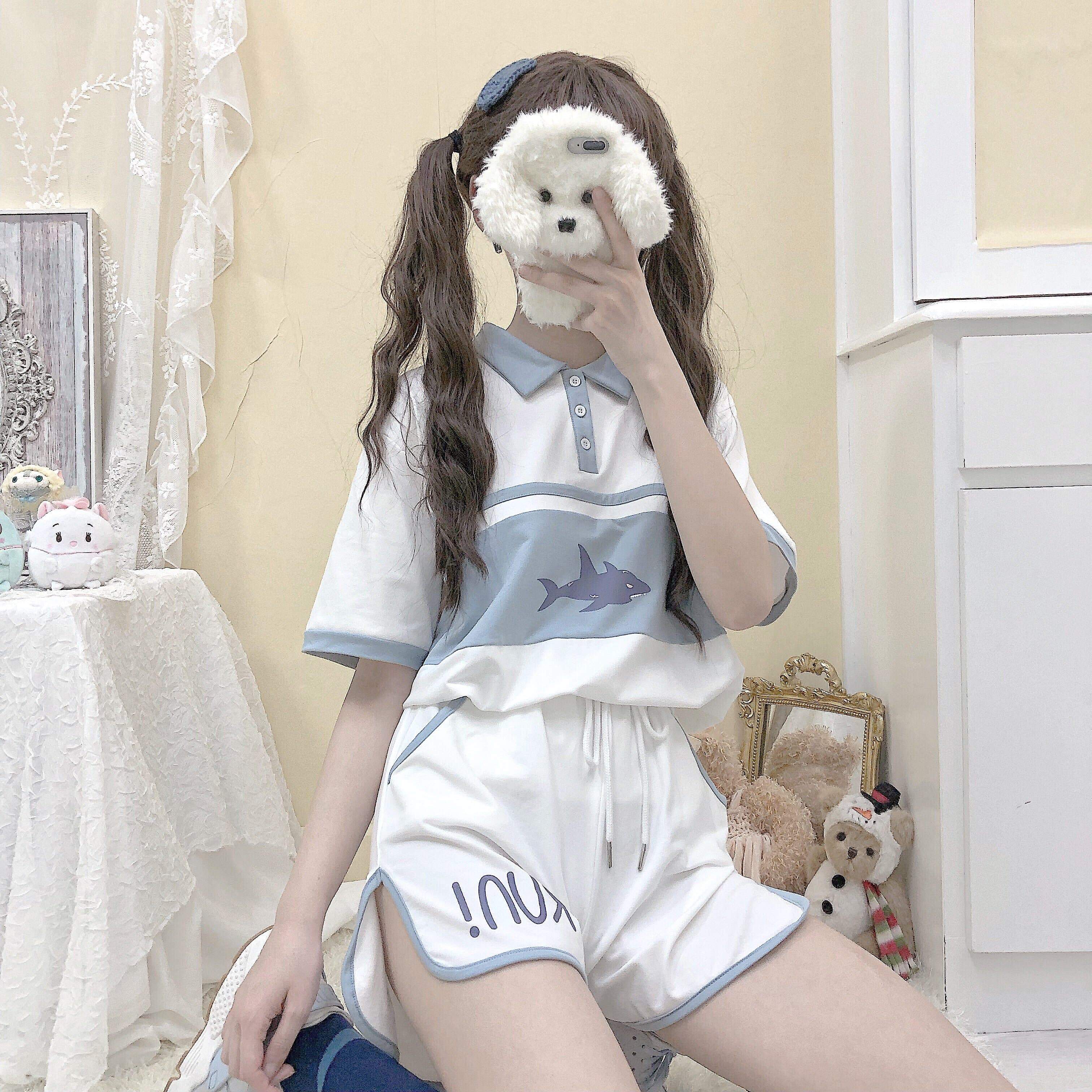 Blue/Pink Cute Shark Polo T-shirt and Shorts Set SS1903 · SpreePicky · Online Store Powered by Storenvy