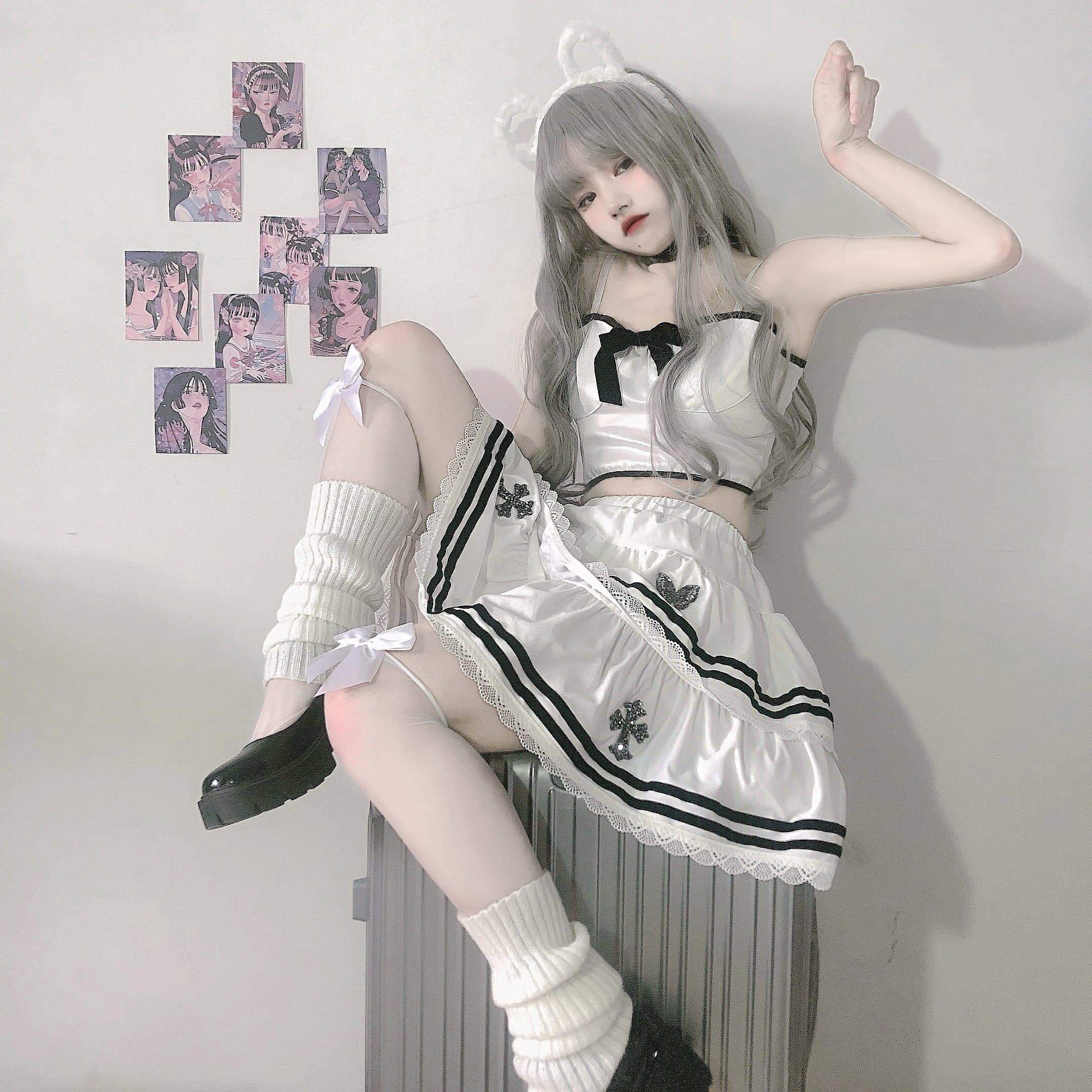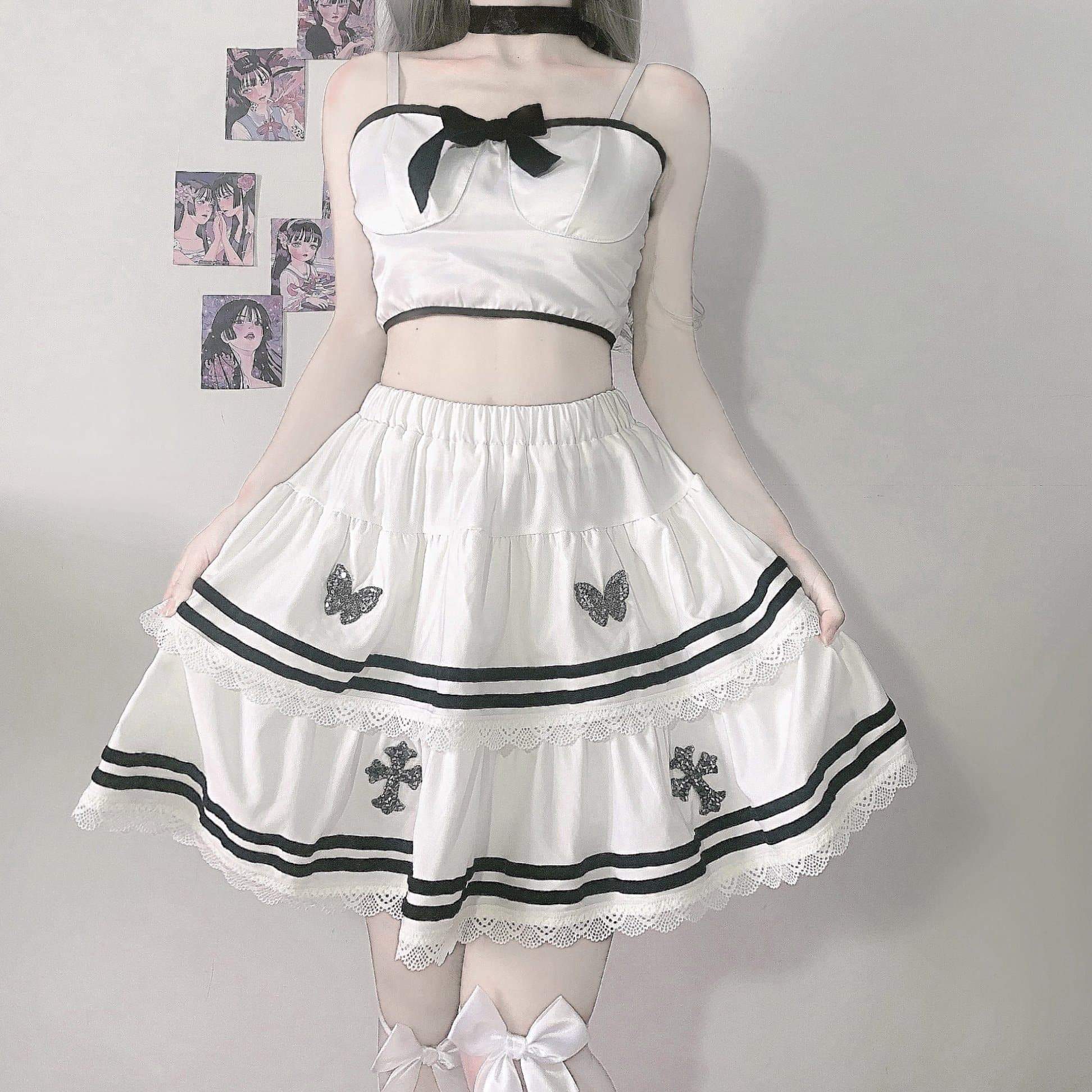 Kawaii Soft Girl Black Bow White Top Cross Butterfly Skirt Set SP16014 · SpreePicky · Online Store Powered by Storenvy