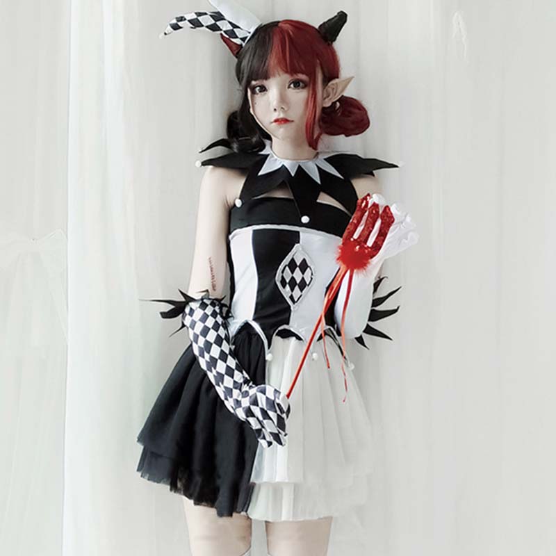 - Halloween Gothic Devil Clown Cosplay Top Skirt Stockings Two Pieces