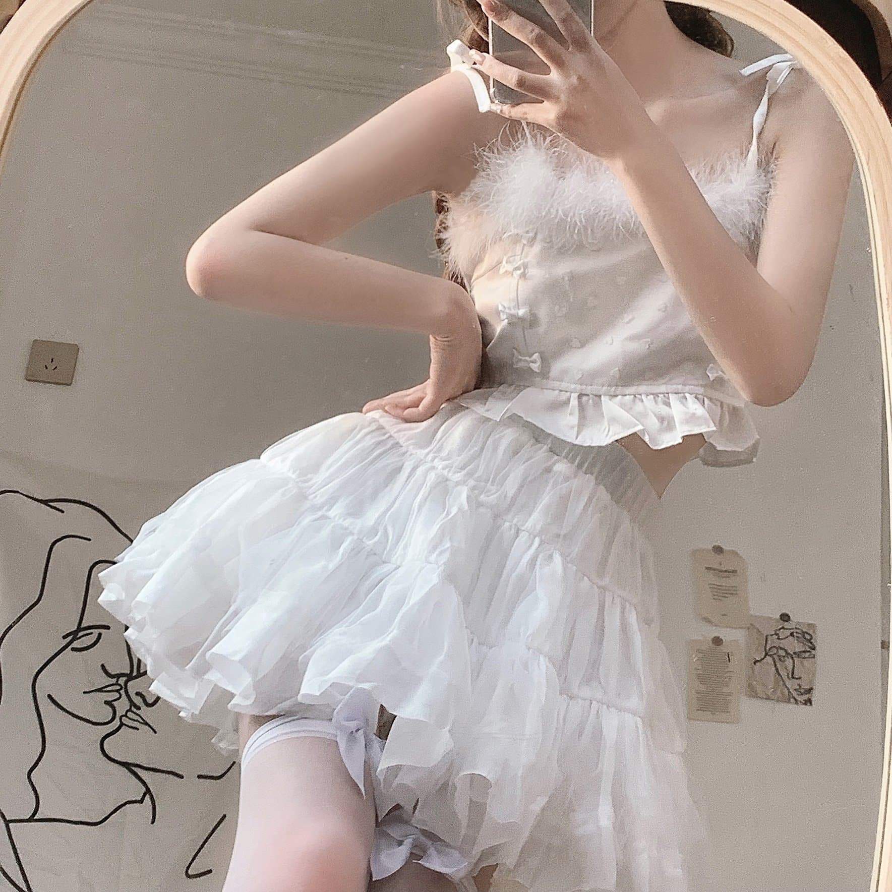 Perfect Cute Bownot Sling Top Short Skirt White Set SS1948