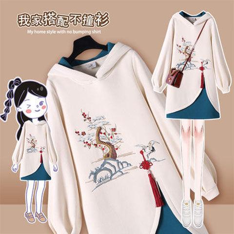 Harajuku Hooded Cheongsam Embroidery Dress BE018