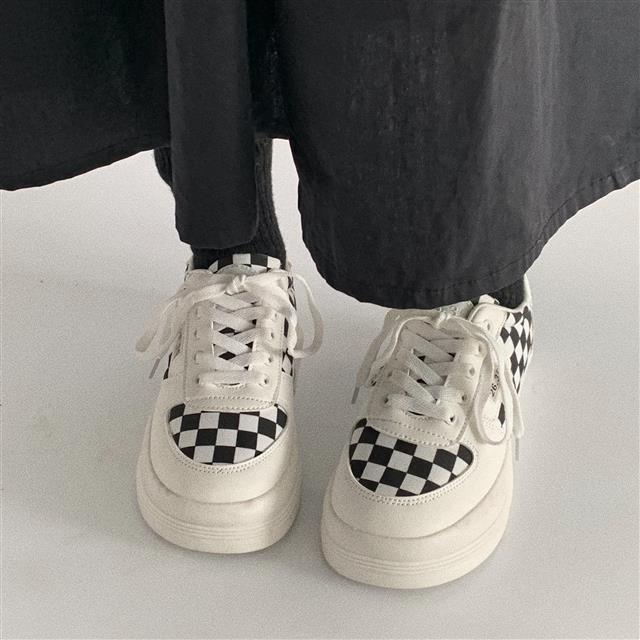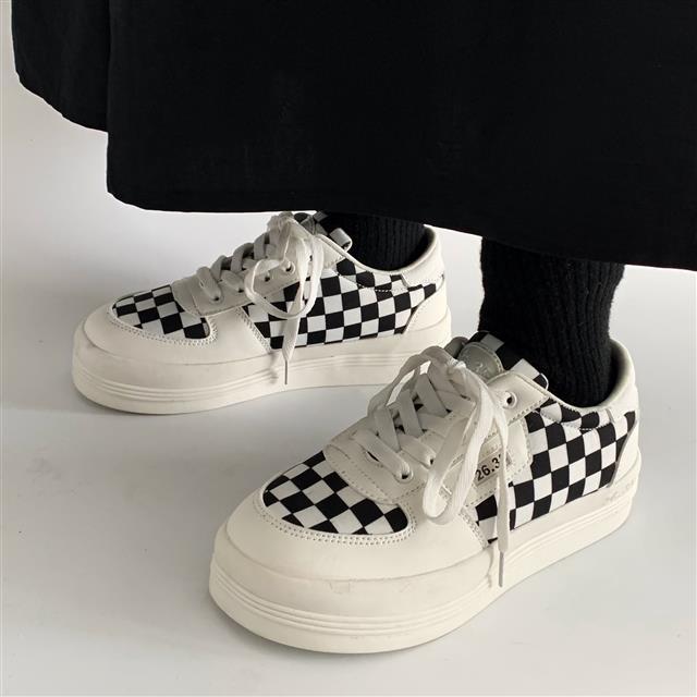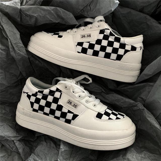 Harajuku Black and White Grid Sneakers