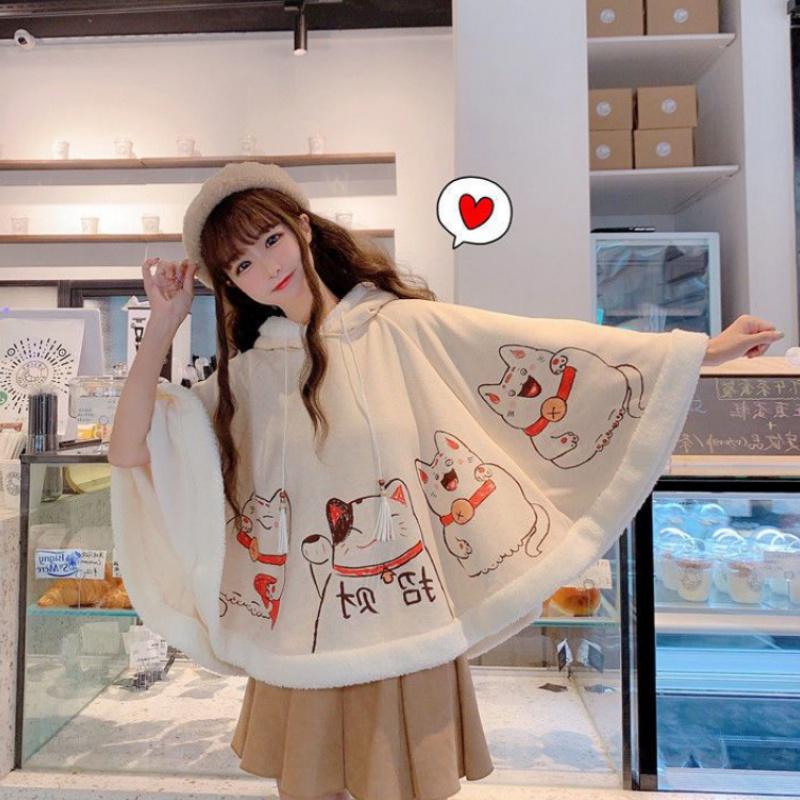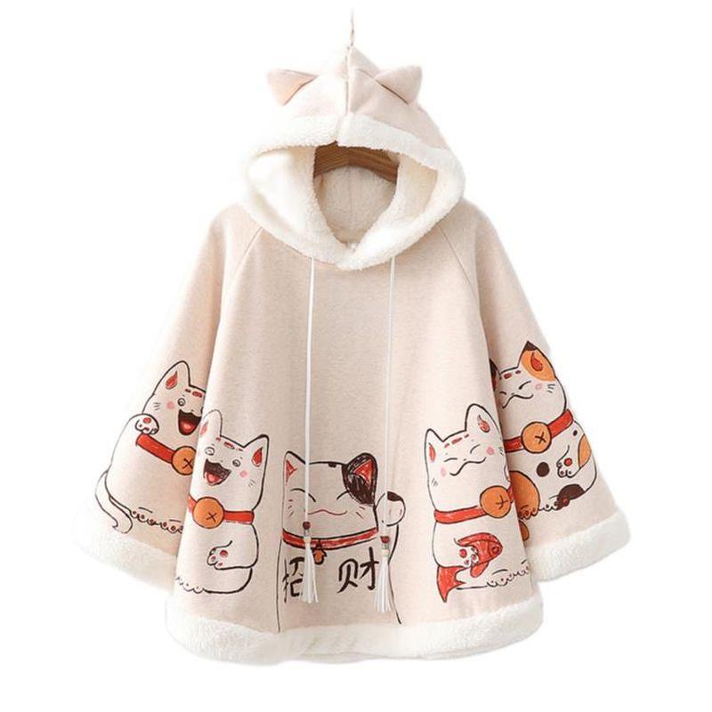 Japanese Harajuku Kawaii Lucky Cat Cloak Cute Hoodies Cape SS2158
