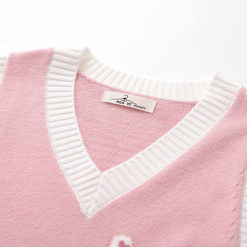 Pink Knitted Vest Bear Embroidery Sweater SP16496 · SpreePicky · Online Store Powered by Storenvy